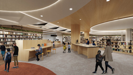 3つのフロアで多彩な本や映像などが楽しめる新しい図書館。