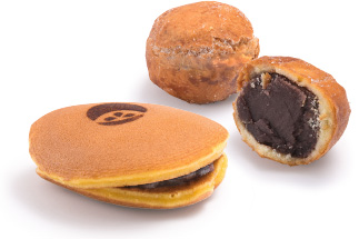 生地をカリッと揚げたドーナツの中にたっぷりのこしあんが入った“あんドーナツ”は、サクサク食感が魅力です。しっとりした生地でパンケーキのような食感の“どら焼き”も見逃せません。