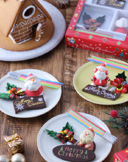 サンタ、チョコレートプレートなどケーキにおすすめの飾りが4点入った数量限定のセットです。
