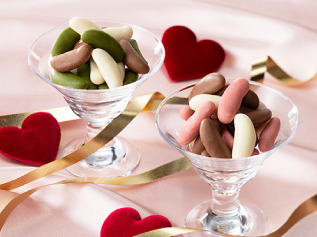 小粒あられを口どけの良い4種類のチョコレートでコーティング。テトラ型の個包装になった食べやすいチョコあられです。