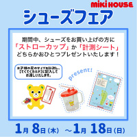 期間中、シューズをお買い上げの方に、計測シートまたはストローカップどちらかおひとつをプレゼント。