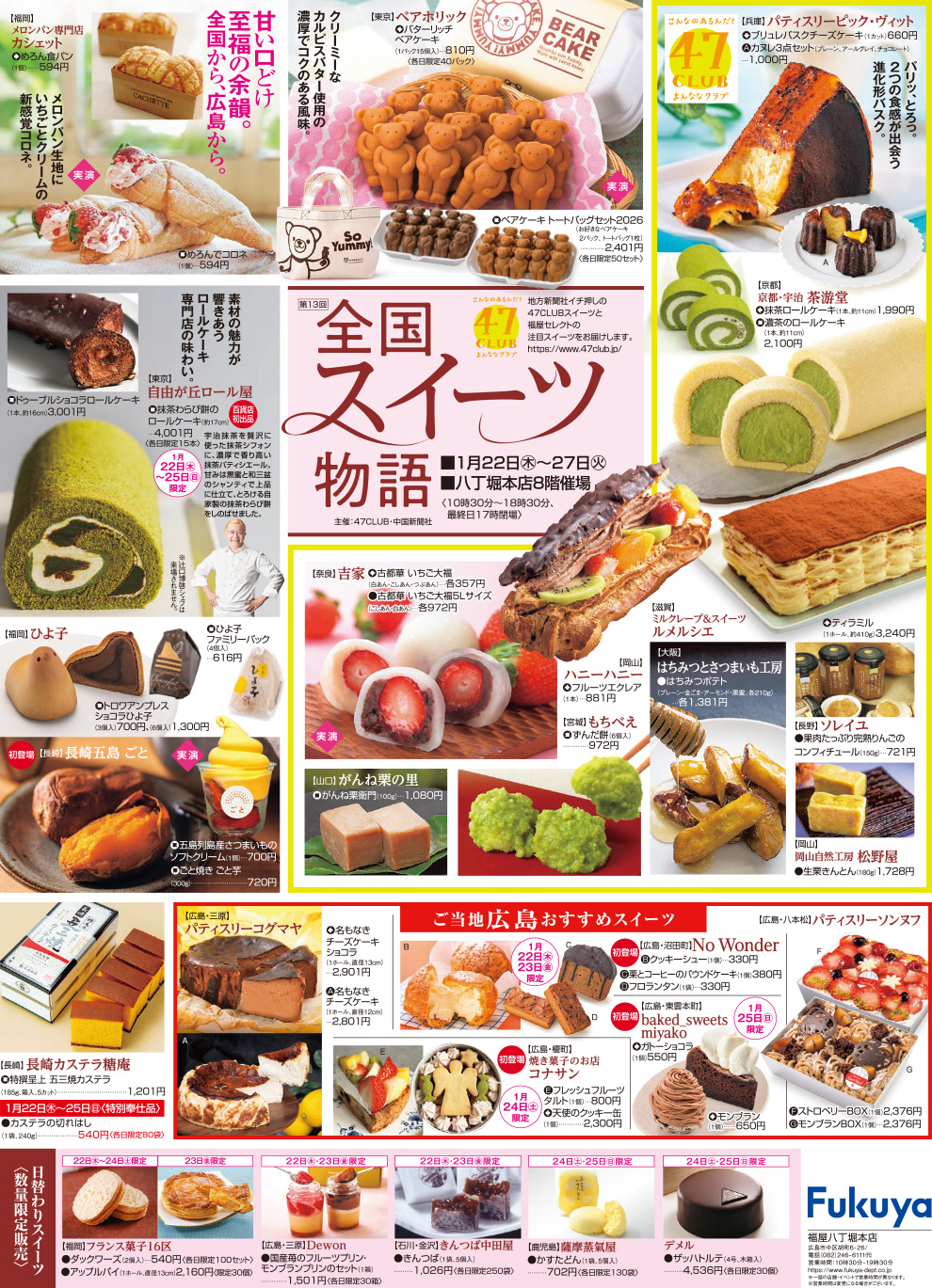 ※初登場マークは「全国スイーツ物語」初登場の店舗です。※広告掲載の商品は限定品もございます。品切れの場合はご了承くださいませ。※天候、交通事情により商品の販売が遅れる場合がございます。※写真はイメージです。※価格はすべて税込です。