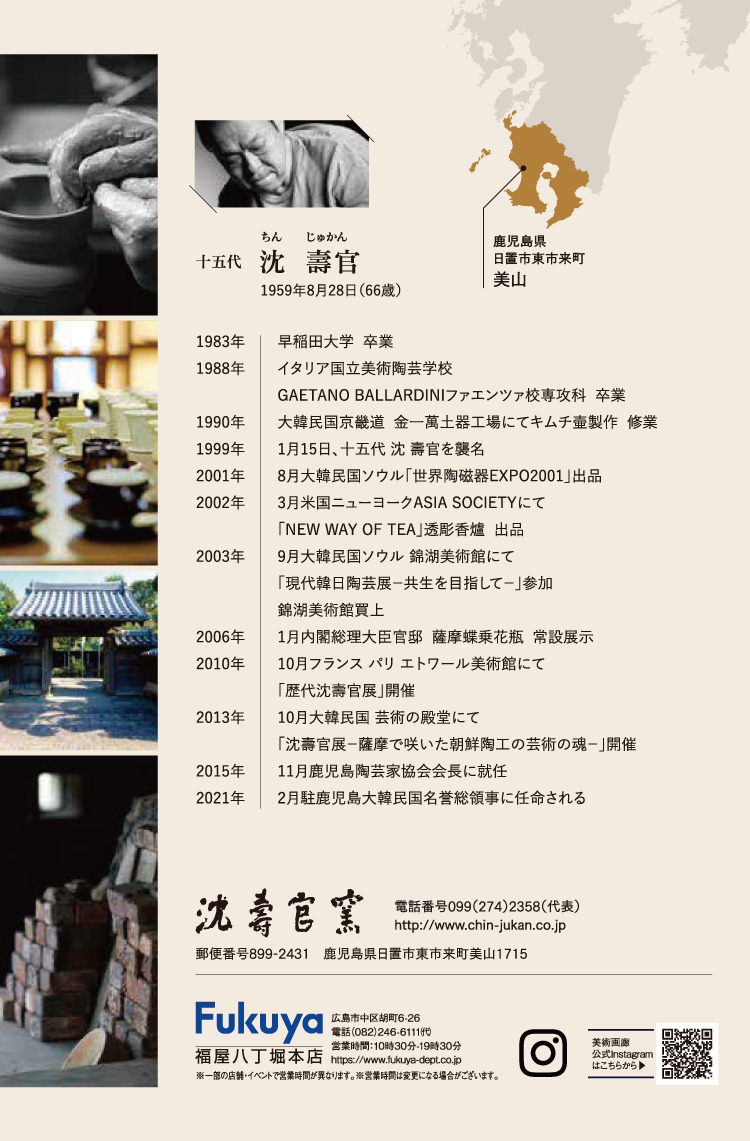 十五代の作品を揃えて「薩摩焼 十五代 沈壽官展」を開催いたします。