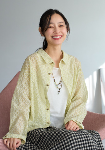 ダイヤ柄が自然に馴染み、程よいシアー感が特徴のやわらかな印象のブラウスです。