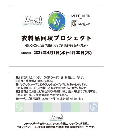 店頭にお持ちいただいた衣料品1点につき、1,000円クーポン券1枚引換いたします。(お客様お一人につき最大9点まで)