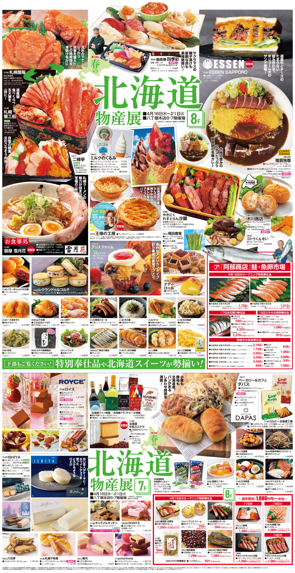 【8F】 ・札幌蟹販 ・鮨茶寮四季彩 ・ESSEN SAPPORO ・札幌 蟹工船 ・二條亭 ・ミルクのくるみ ・唯我独尊