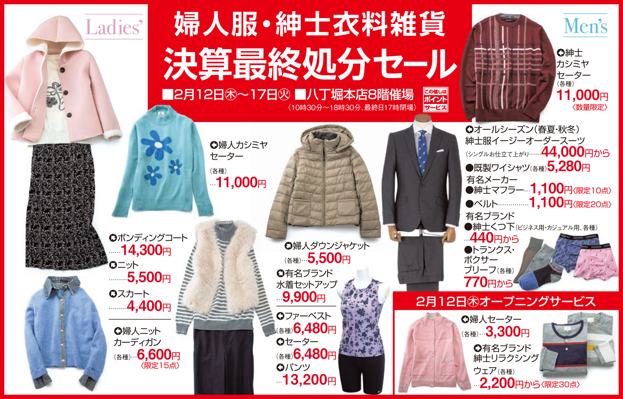 婦人服・紳士衣料雑貨 決算最終処分セール