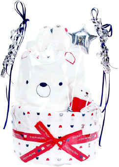 安心・安全の日本製にこだわった、トリコロールカラーのかわいいくまさんのギフトセット。