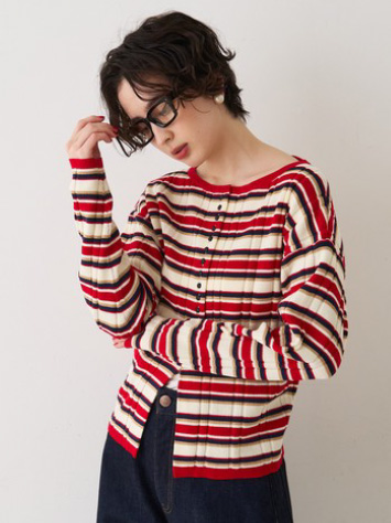 ●ストライプ組織2WAYニットカーディガン