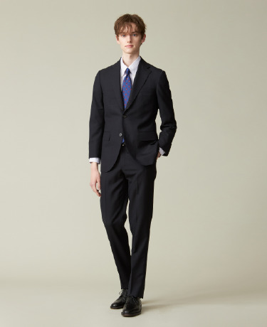 伸縮性と耐シワ性に優れたビジネススーツ素材です。2本の糸を強く撚り合わせたハイツイスト糸でのドライなタッチが特徴です。御幸毛織伝統の製法で作られた生地は、極めて滑らかな触感と仕立て映えいたします。
