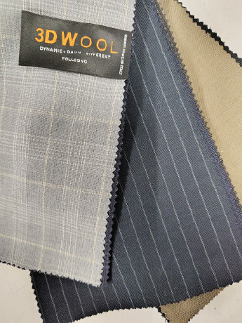 経糸には通常のウール糸を用い、緯糸のウール糸へわずかにポリウレタンをブレンド(全体の1%)しているのが特徴。伸縮性を追うだけでなく、復元性や風合い、強度等の要素も持ち合わせた非常に使いやすい生地となっております。