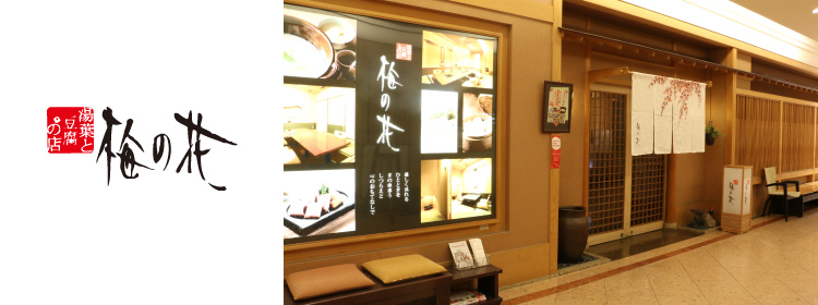 豆腐・湯葉を使ったお料理がメインの和食レストラン。お店が特にこだわっているのは、素材そのものの風味を生かしたお食事を提供することです。数あるメニューの中でも、梅の花名物ともいうべき『とうふしゅうまい』は、とうふ屋が作る、ふっくらしゅうまい。大豆のコクと旨味がつまった梅の花自慢の味。もう1つのこだわり、“本削り節”と“利尻昆布”の出汁を使った「本物の味」を味わっていただければ幸いです。