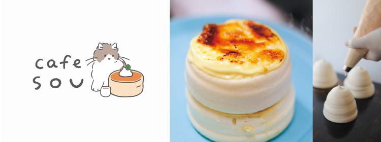 ふわプル食感にこだわったスフレパンケーキ。広島産の新鮮な卵を使用し、じっくり蒸し焼きにすることで、ふんわりしっとりとした口どけの良い食感を実現しました。注文を受けてから一枚ずつ焼き上げることで、できたての美味しさをお楽しみいただけます。