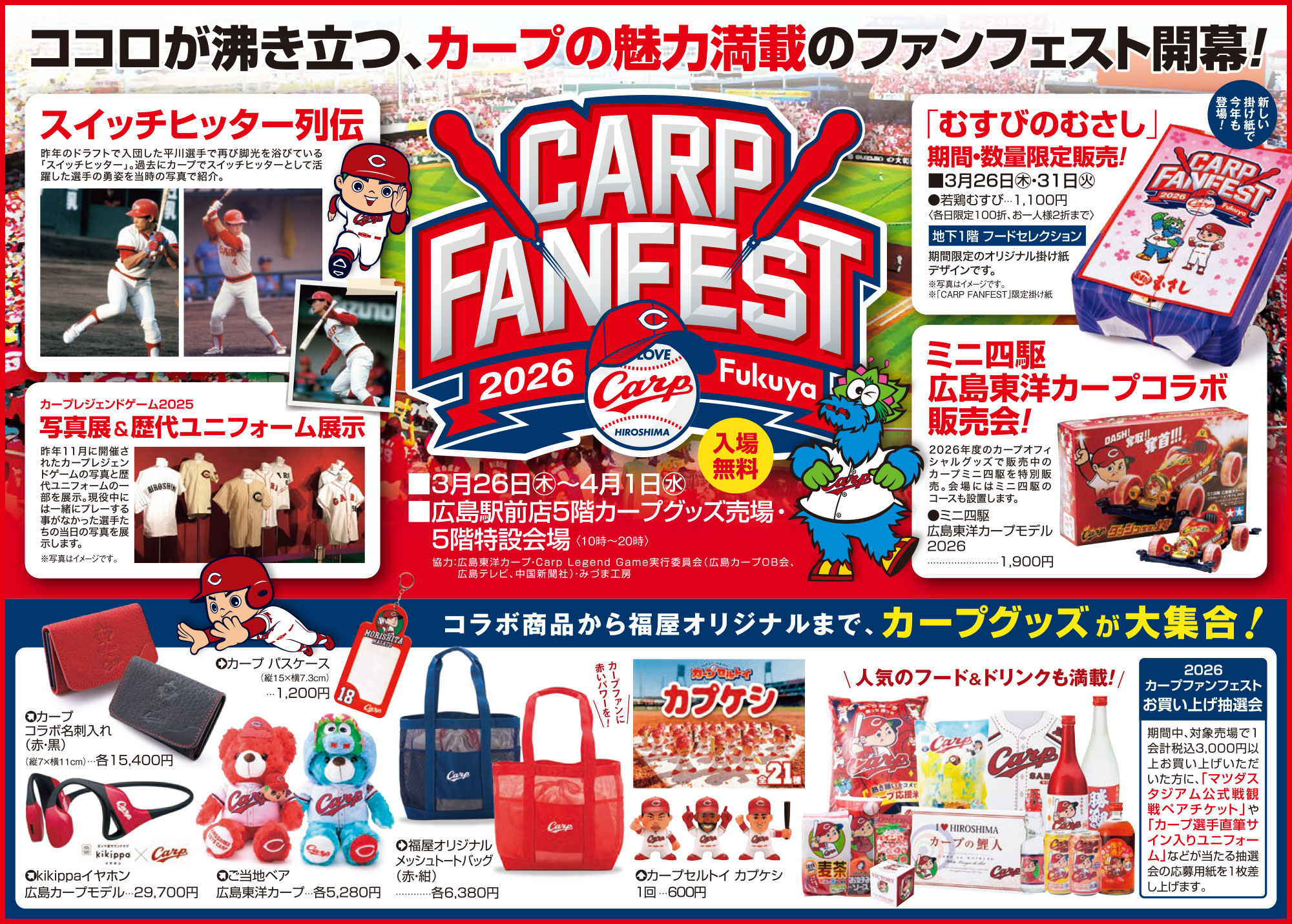 注目のカープコラボミニ四駆や大人気のカプケシなど、カープグッズも満載!