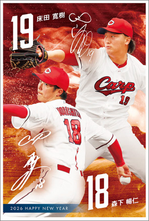 ★5.小園 海斗 選手/10.佐々木 泰 選手★9.秋山 翔吾 選手/96.中村 奨成 選手★61. S.ファビアン 選手/95. E.モンテロ 選手★18.森下 暢仁 投手/19.床田 寛樹 投手