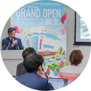 メインビジュアルの披露をし、ペデストリアンデッキの開通・広島駅前店のリニューアルに関する内容を発表しました。