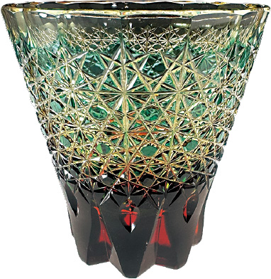美しい琥珀色と緑の被せガラス
