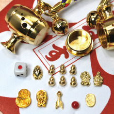 (2.7×1.8cm、真鍮・レーヨン、10種15個の縁起物入り) 1,650円