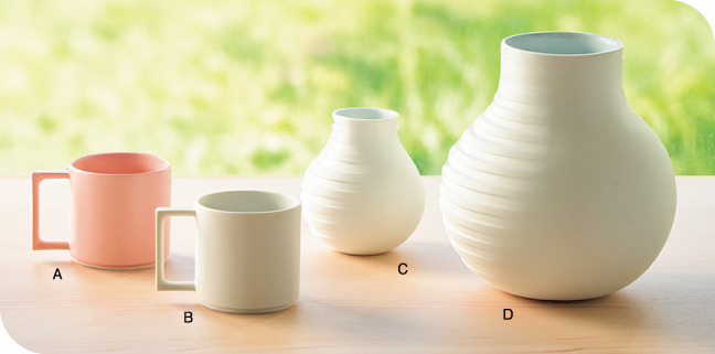 (A)Pink mug 4,400円 (B)Matt white mug 3,300円 (C)Mutant Vase S 4,950円