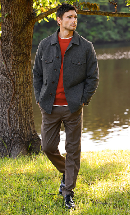 ニットとの相性抜群のベーシックなデザインが魅力のウール混カバージャケット。