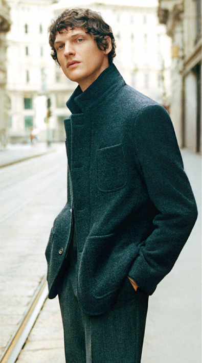 コルネリアー二のNEWモデル、“OUTDOOR JACKET”は、ジャケットとアウターが一つになったデザイン。立ち襟としても、テーラードのように寝かせても着用でき、スタイリングが楽しめます。