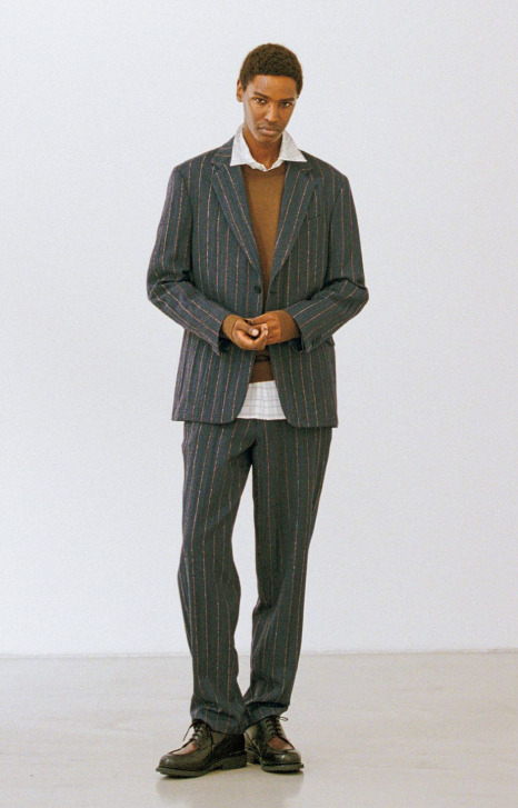 CANONICOの再生可能ウール素材を使用した通気性抜群のロットジャケット。クラシックなチョークストライプが印象的。